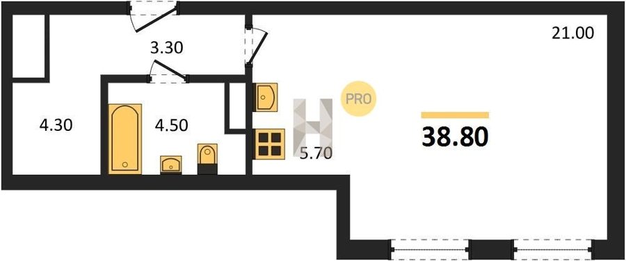 Площадь от 38.8 м2